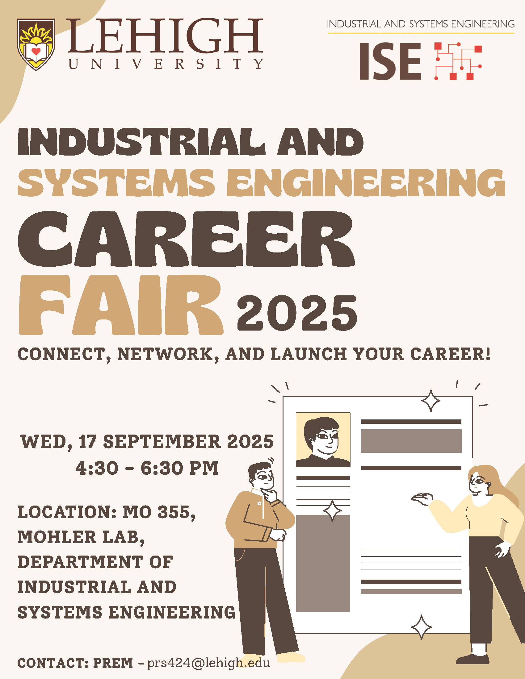 ISE Career Fair Our career fair is successfully organized every fall. It targets senior undergraduate and master’s students. Consulting companies participate intensively, in addition to a diverse array of companies interested in our ISE students. 2025 Edition Previous Job Fair Announcements ISE Client-Driven Student Projects ISE Industrial Liaison Program (ISEi) Industry Events Partnerships