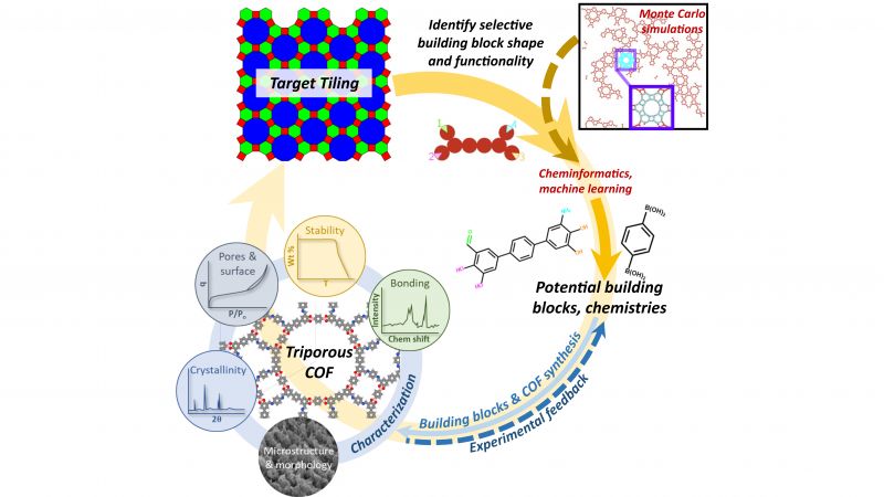 But to reach the point where COFs can be synthesized efficiently and their sieve-like qualities put to use (pores of varying sizes would allow desired molecules to pass through, while stopping others), researchers need to sift through millions, and perhaps billions, of potential building-block combinations.