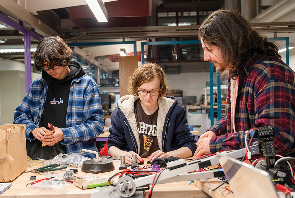 Robotics has become a popular area of study at Lehigh in recent years. The Autonomous and Intelligent Robotics Lab (AIR Lab) opened at the Mountaintop Campus in 2021, and there are numerous active student clubs, including the Lehigh Alliance of BattleBots, Lehigh Aerial Swarms Club, Lehigh University Space Initiative, and Lehigh Underwater Robotics. The studio will serve as the new hub for clubs and provide a space for undergraduates, regardless their level of experience, to explore robotics.