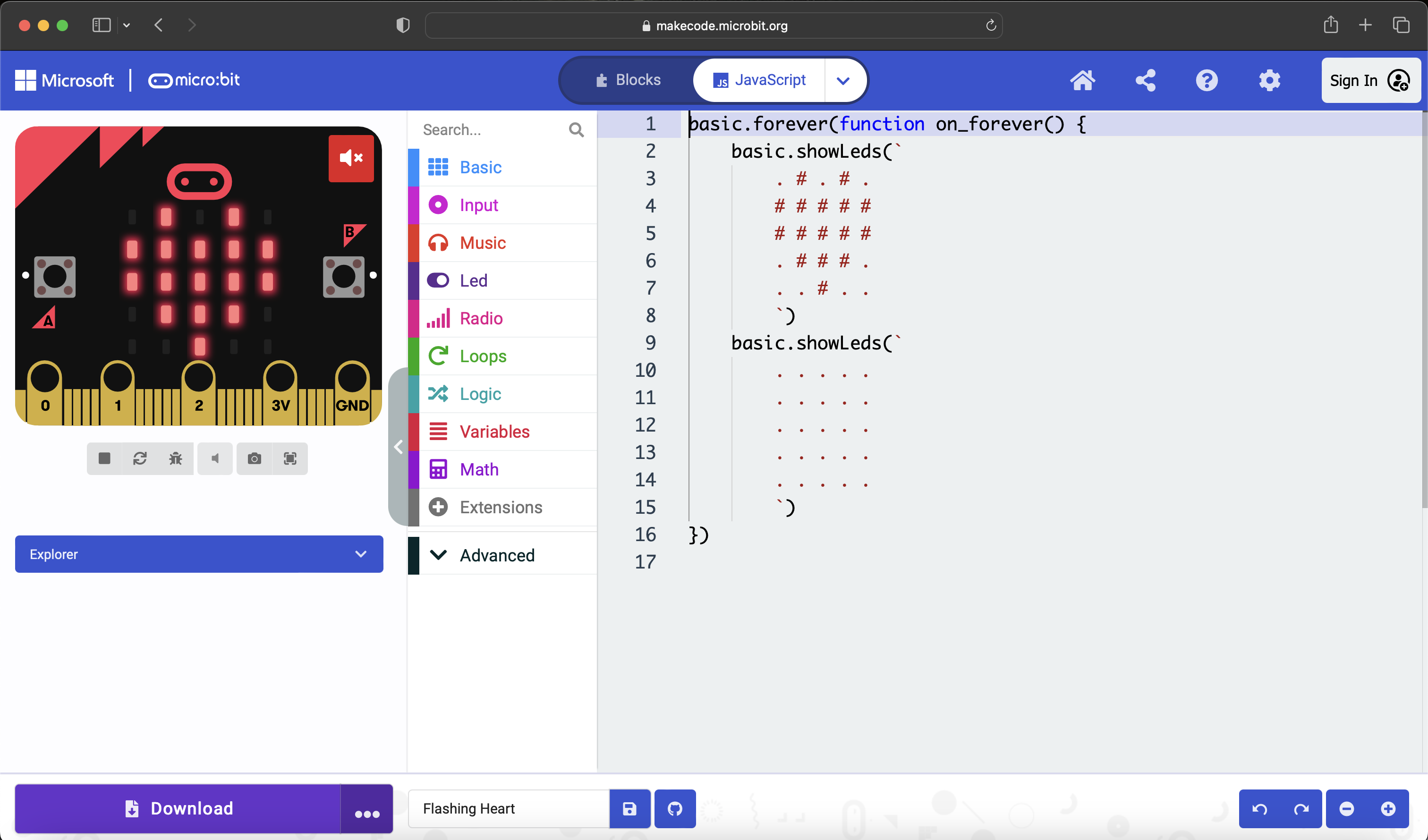 While creating a flashing heart animation is exciting in and of itself, this module aims to dig deeper into some real code behind this block coding exercise!